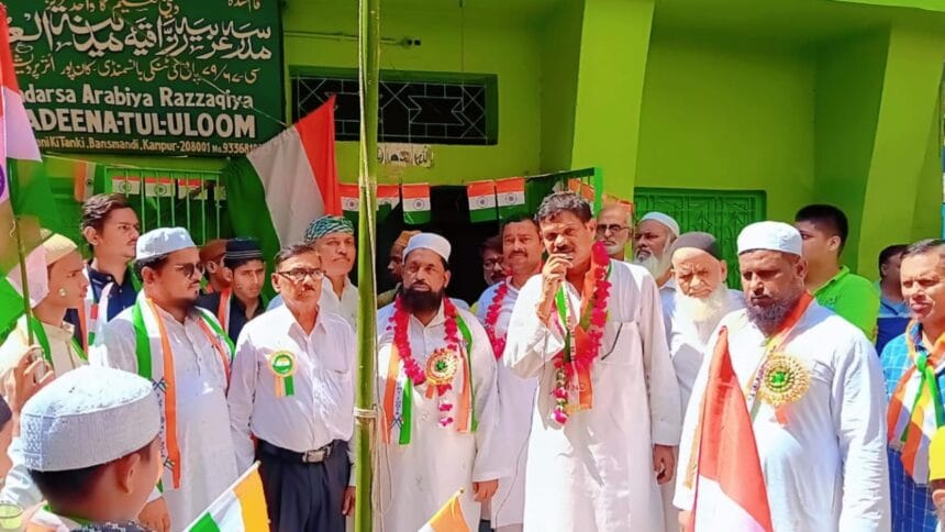 کانپور (محمد عثمان قریشی) مدرسہ عربیہ رزاقیہ مدینۃالعلوم بانس منڈی میں یوم آزادی کے موقع پر جوش و خروش کے ساتھ پرچم کشائی کی گئی اس موقع پر مدرسہ ہذا کے ناظم اعلیٰ حافظ عبدالرحیم نے وطن کے لیے قربان ہونے والے شہیدوں مولانا ابوالکلام آزاد اشفاق اللہ خاں علامہ فضلِ حق خیرآبادی ویر عبدالحمید مولانا حسرت موہانی جنرل شاہ نواز خاں فیض احمد بدایونی مولانا عنایت احمد کاکوروی مولانا کفایت علی مرادآبادی مولانا لیاقت علی الہ آبادی مولانا لطف اللہ علیگڑھی قاضی فیض اللہ کشمیری مولانا محمد علی جوہر کے نام خراج عقیدت پیش کیا اور پرچم کشائی سابق ایم ایل اے سنجیو دریاوادی اور کارپوریٹر اجو قریشی نے کی۔