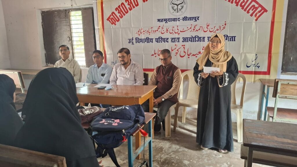بارہ بنکی(ابوشحمہ انصاری) تعلیم ایک بہتر معاشرہ تشکیل دیتی ہے۔ تعلیم کے ذریعے ہی ہم اپنی ثقافت اور تہذیب کا علم حاصل کرتے ہیں۔ ان خیالات کا اظہار شعبہ معاشیات کے پروفیسر ڈاکٹر محمد سعید نے فخرالدین علی احمد گورنمنٹ پوسٹ گریجویٹ کالج، محمود آباد، سیتا پور میں شعبہ اردو کی جانب سے منعقدہ ایک ادبی پروگرام میں کیا، جس میں ایک مباحثہ مقابلہ بعنوان "حال میں اردو کا مستقبل” اور غزل گائیکی کے مقابلے منعقد ہوئے۔ انہوں نے مزید کہا کہ اس طرح کے پروگرام طلباء کو ایک پلیٹ فارم اور اپنی صلاحیتوں کو دکھانے کا موقع فراہم کرتے ہیں۔ شعبہ کامرس کے پروفیسر ڈاکٹر سنجیو اگروال نے تعلیم کی اہمیت بیان کرتے ہوئے اپنی سریلی آواز میں ایک غزل سنائی۔ پروگرام کی نظامت کرتے ہوئے شعبہ اردو کے چیئر اسسٹنٹ پروفیسر ڈاکٹر داؤد احمد نے اپنے خیالات کا اظہار کرتے ہوئے کہا کہ شعبہ اردو کے زیر اہتمام منعقدہ دور حاضر کے مقابلے میں حصہ لینے والے طلباء ایک دن اپنی منفرد پہچان بنائیں گے اور اپنا اور کالج کا نام روشن کریں گے۔ اردو محبت اور آداب سکھاتی ہے۔ یہی وجہ ہے کہ زندگی کے تمام شعبوں سے تعلق رکھنے والے لوگ اپنی گفتگو میں کثرت سے اردو الفاظ کا استعمال کرتے ہیں۔ مباحثہ کے مقابلے میں بی اے سیکنڈ سمسٹر کی سحر بانو نے اول، بی اے چوتھے سمسٹر کی ماہ مریم نے دوم اور بی اے چھٹے سمسٹر کی فاطمہ زہرا نے سوم پوزیشن حاصل کی۔ غزل گائیکی کے مقابلے میں بی اے چوتھے سمسٹر کی ماہ مریم نے اول ، ایم اے چوتھے سمسٹر کی ثنا بانو نے دوم اور چھٹے سمسٹر کی علیشہ پروین نے سوم پوزیشن حاصل کی۔ ڈاکٹر محمد سعید اور ڈاکٹر سنجیو اگروال حکم تھے۔ مقابلے کے نتائج کا اعلان شعبہ کامرس کے پروفیسر ڈاکٹر سنترام سنگھ نے کیا۔ اس موقع پر کالج کے اساتذہ اور طلباء موجود تھے۔